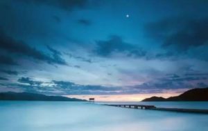 过了一条街,我们便到了海边。蓝色的海面辽阔而平静。在一张木椅上,我们坐下来。 你从衣兜里拿出一卷东西,慎重地放到我的手里。我打开帆布包,里面就是这份精致的竹简,上面刻着你写的一首诗: