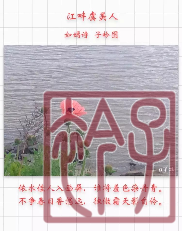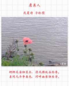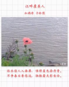 2016-11-23 一捧素香 2016-11-23 子衿诗画 满江白鹭对苍穹, 一捧素香抱月空。 但得年华清石畔, 伊人常伴水长东。 Related Posts 才情诗赋一相逢,胜却人间无数! 夏安 长相思 – 饺子 About The Author 子衿