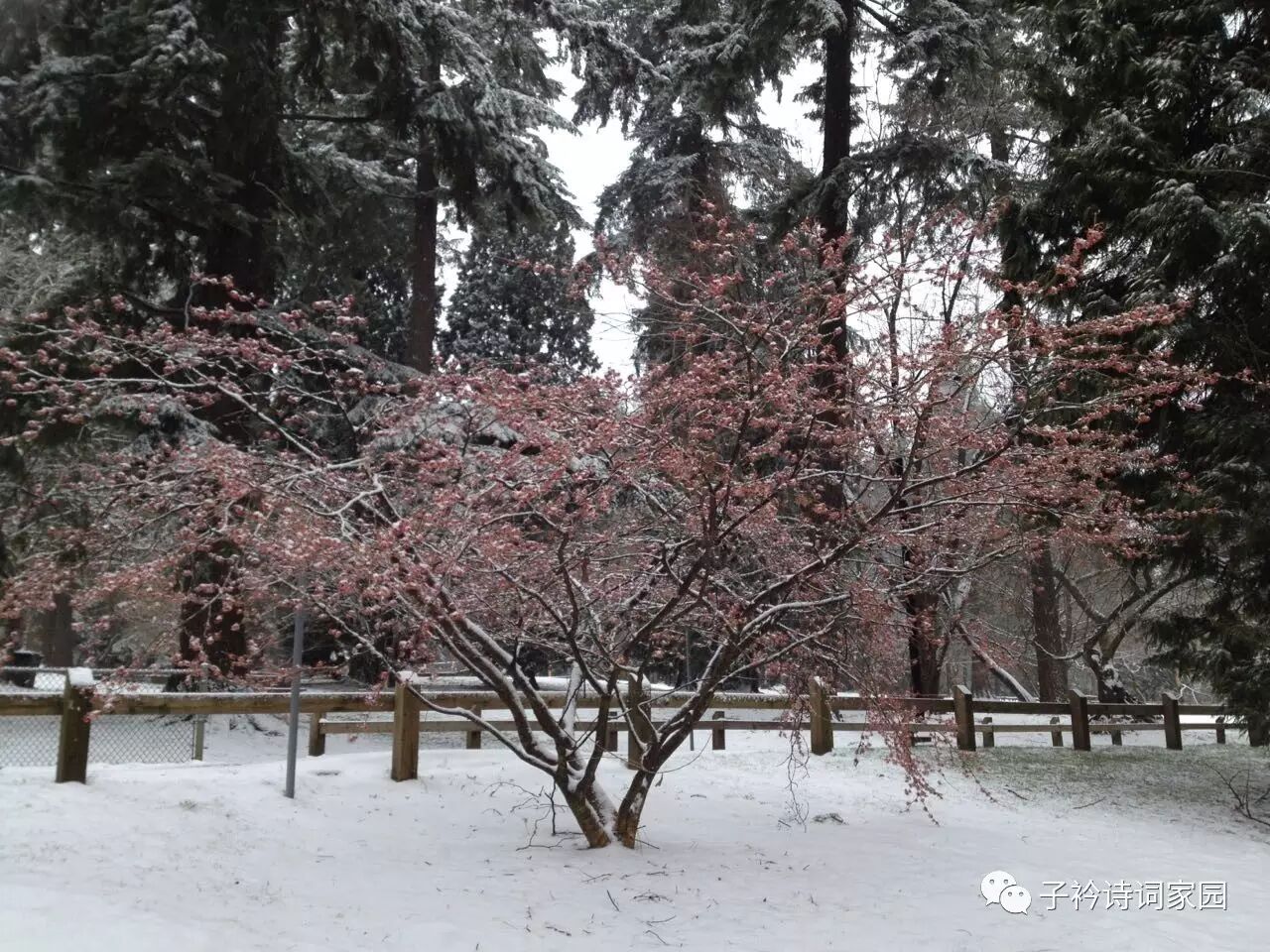 银雪漫重楼,红梅裹素裘。
