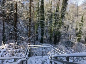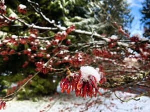 但是它根本性的变化却不是颜色,而是整个树林变异常敏感。听,我的鞋子踩在冰雪之上,地面发出“咔咔咔”的脆响。有一只乌鸦在高空“呱”的一声叫,便震动一棵已经不堪重负的树枝,一团雪便掉下来,沙沙沙依次穿过树枝,然后啪一下打到灌木从上。这一动不要紧,但会带动更多的连锁反应,初融的雪水也开始窸窸窣窣滴落下来,打击树叶发出“嗒嗒嗒”的声响。