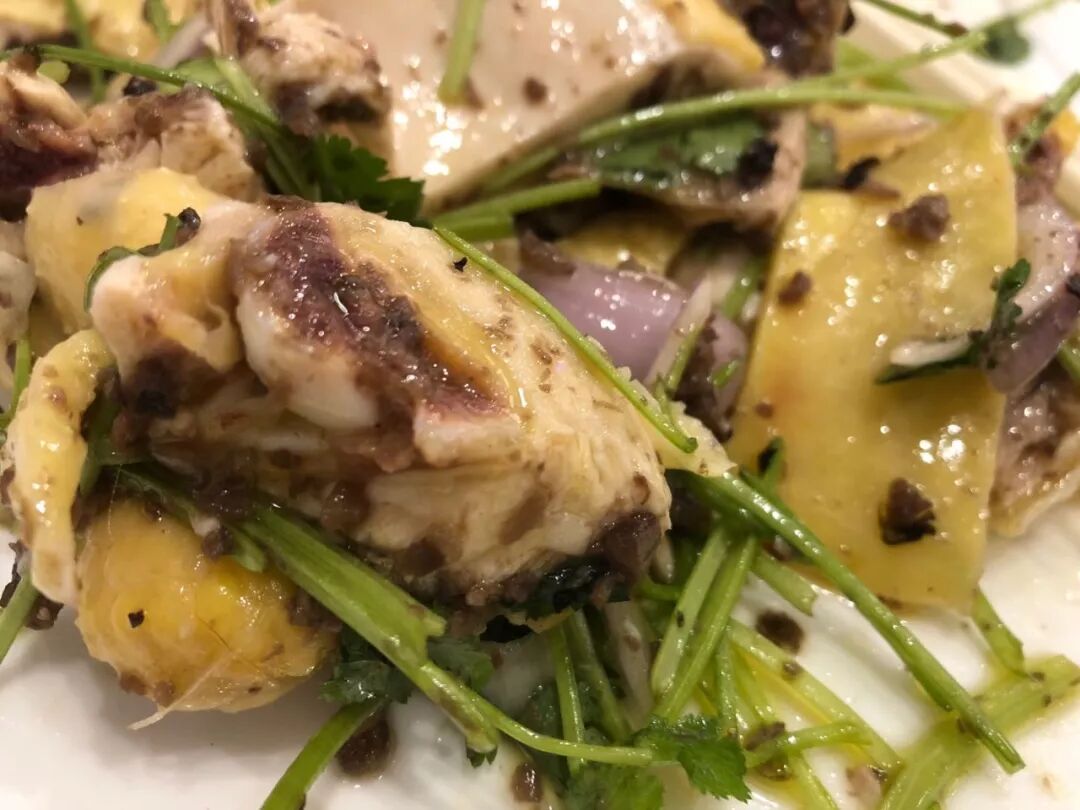 松露鸡,好吃的其实是松露,褐色的一点点,放到口中,有股幽微但尖锐的奇特芳香,那种芳香毫不张扬,而是极细的在我的口中飘忽游走,就像荧光棒上的一点小火星在黑暗中游走。咽下之后却没有留下一点香味残存。他说,极品的滋味其实就是这样,不粘不腻。嗯,大概是这样的吧。然后他告诉我松露是一种真菌类植物,主要生长在橡树须根部附近的泥土下。因为在泥土下,所以很难找。因为猪对那种气味非常敏感,所以要采集松露通常需要带着猪,借助猪的嗅觉。听着听着,我仿佛已经行走在森林中,站立在一个松树下……
