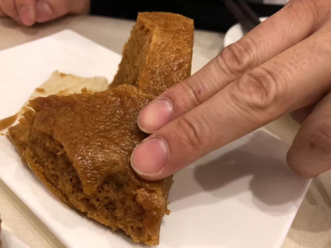 我们还点了古法马拉糕,褐色的一团,但是那种松软和弹性,是在糕点中少见的。他不停用手指在按压马拉糕。然后很诡异地跟我说:“你猜猜我想到什么?”